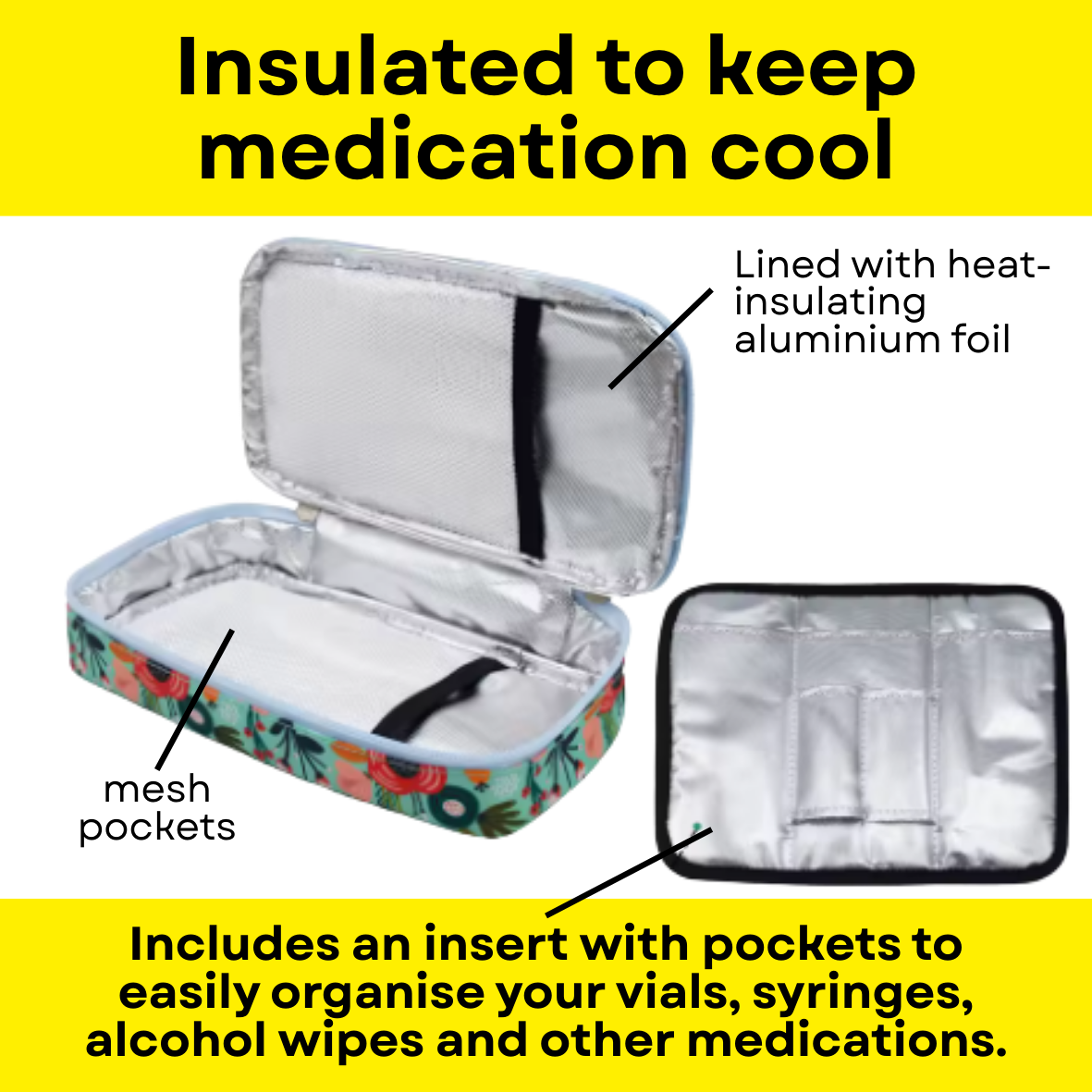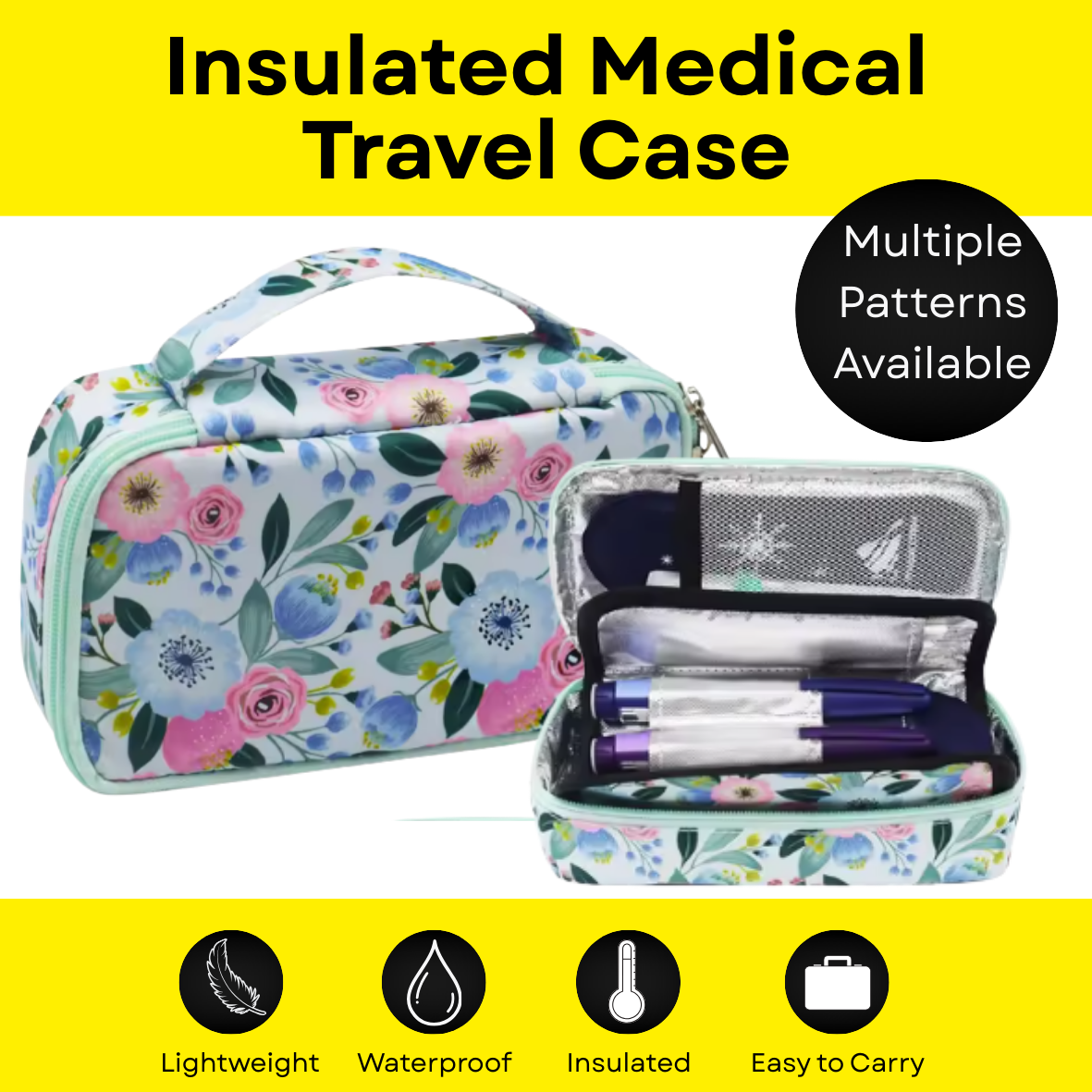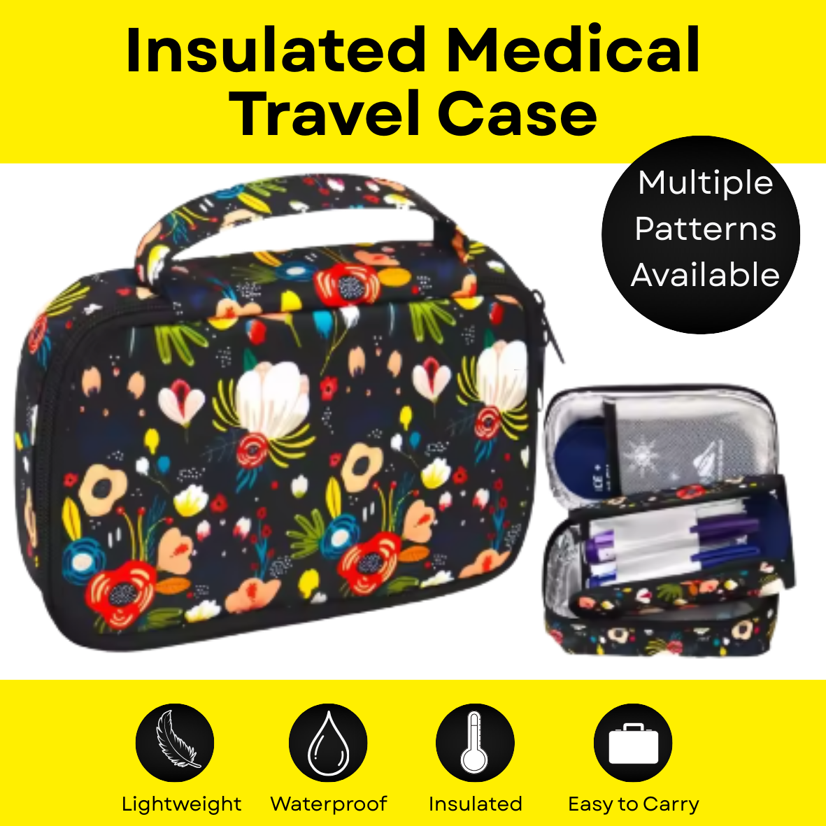 Whether you're heading to work, travelling for the weekend, or jetting off on holidays, this insulated travel case is your stress-free way to store all of your Illuminate Life essentials. No more juggling loose items. No more worrying about temperature. Just easy, organised, protected storage in a cute floral design that keeps everything safe and cute.